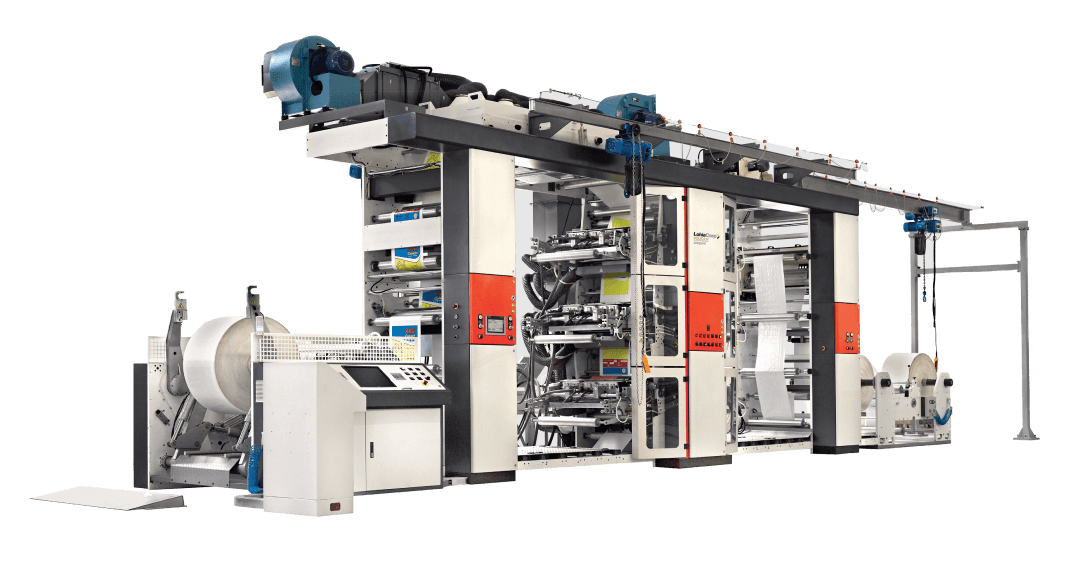 Designed for PP and HDPE woven fabric substrates, our roll-to-roll flexographic printing machines are available for up to eight colours.